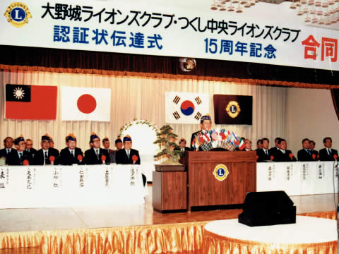 この度、つくし中央ライオンズクラブは結成50周年を迎え、多くの皆様に支えられて記念式典を挙行できます事は、この上ない喜びであります。