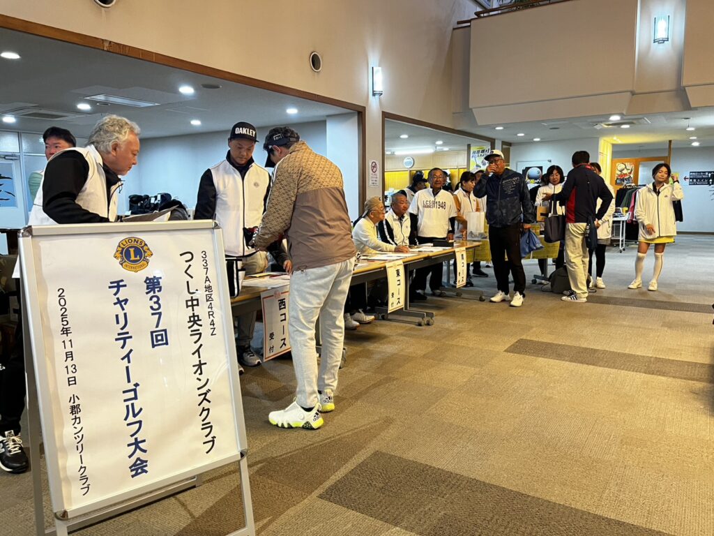 令和7年11月13日(木)、小郡カンツリー倶楽部にて、当クラブ主催のチャリティーゴルフ大会を開催いたしました。当日は200名を超える皆様にご参加いただき、盛況のうちに終了いたしました。受付にはレモネードスタンドを設置し、小児がん支援のための活動も行いました。ご参加・ご協力いただいた皆様に心より感謝申し上げます。